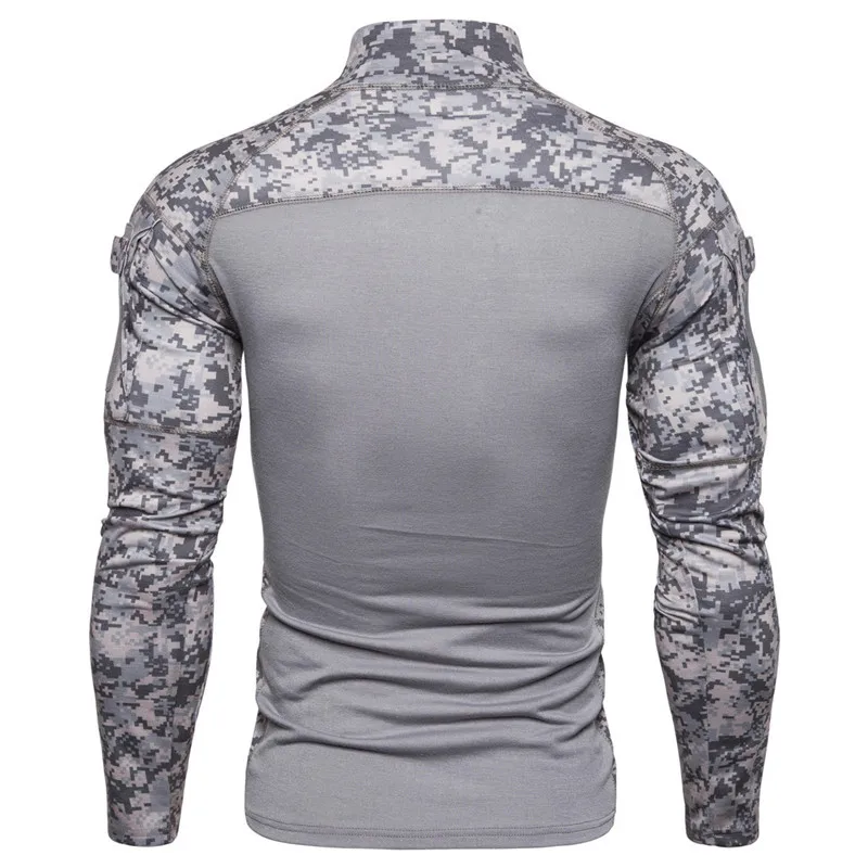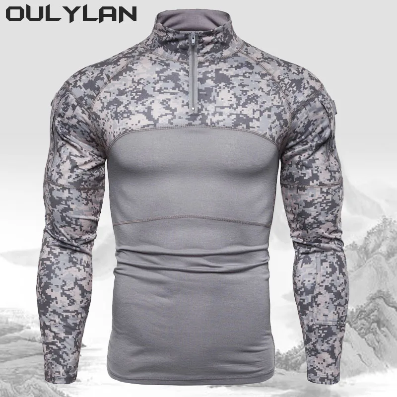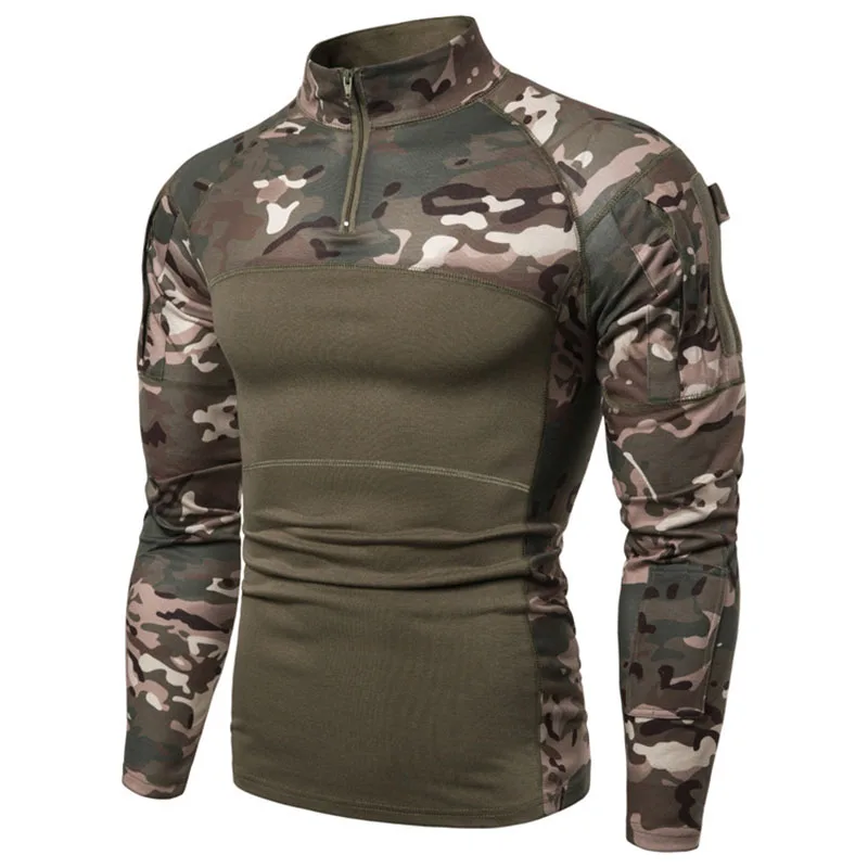 2024 Men’s Military T-shirt Outdoor Elastic Fitness Camo Tactical Tops Long sleeved T-shirt Men Zipper Pocket Clothing